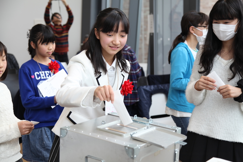 ②子どもたちが選挙演説を行い、代表を決めるための投票を行う選挙体験