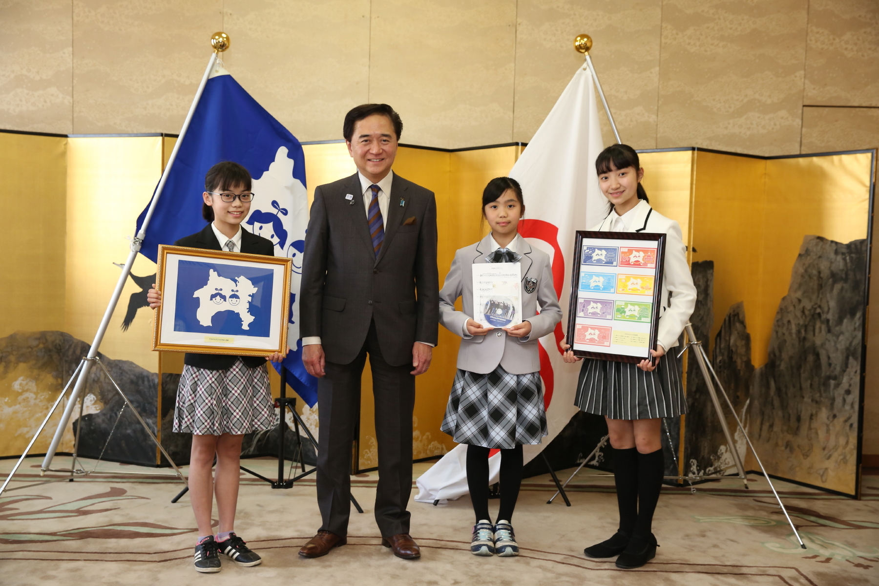 かながわ子ども合衆国大統領の溝口さん、副大統領の中島さん、小倉さんが、神奈川県庁に黒岩知事を訪問しました。(2018年3月29日)